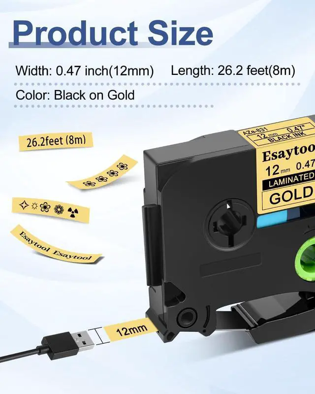 Esaytool Compatible with P-touch TZE-831 12mm Label Tape