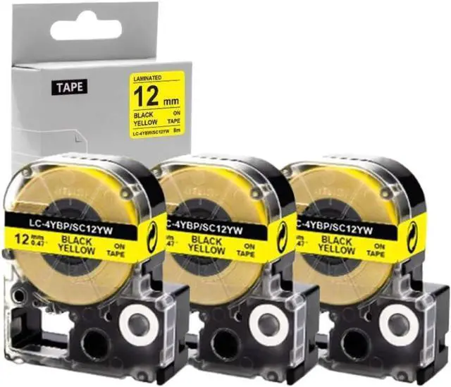 Features 12mm black on yellow tape ideal for -visibility labeling in office or industrial environments