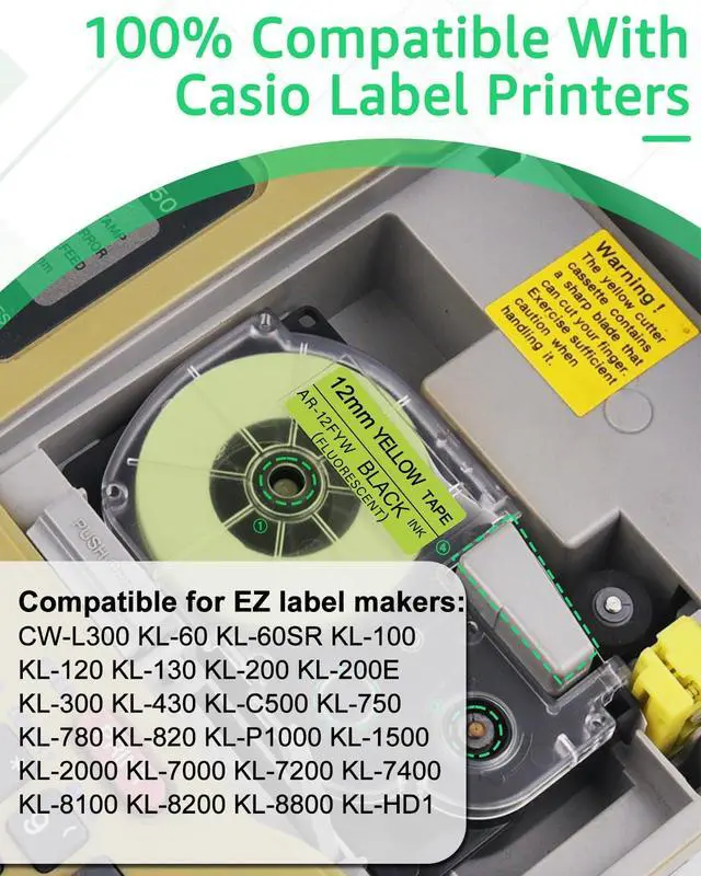 CompatibilityCompatible for EZ label makers: CW-L300 KL-60 KL-60SR KL-100 KL-120 KL-130 KL-200 KL-200E KL-300 KL-430 KL-C500 KL-750 KL-780 KL-820 KL-P1000 KL-1500 KL-2000 KL-7000 KL-7200 KL-7400 KL-8100 KL-8200 KL-8800 KL-HD1
