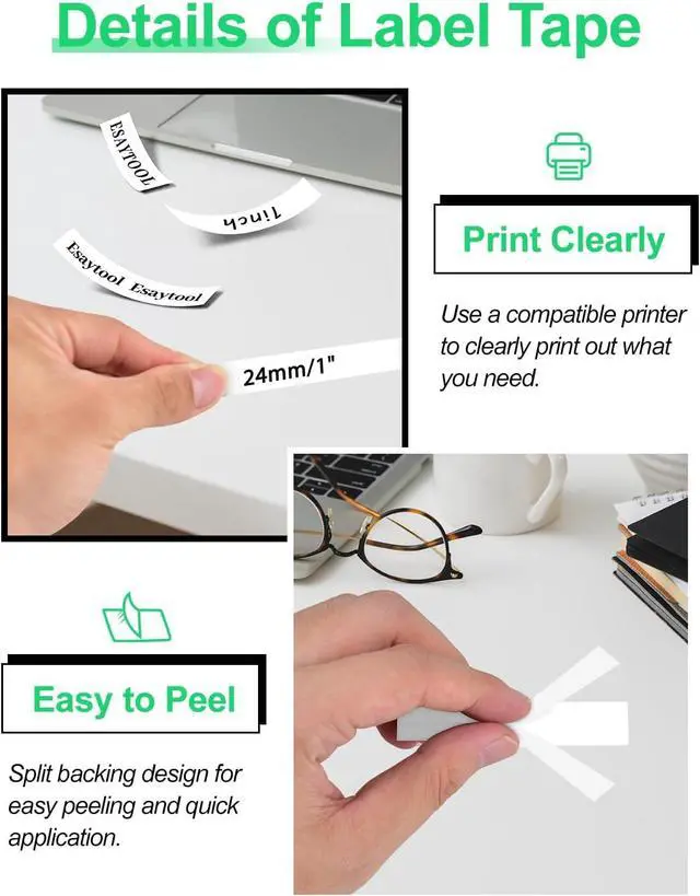 Features: Smooth, lag-free printing with sharp text. Clean-peel backing tape leaves no residue. High-quality, fade/smudge/tear-resistant material. Strong adhesive bonds to multiple surfaces, allows repositioning.Withstands temperature, humidity, rough handling. Available in various sizes & colors for diverse needs.