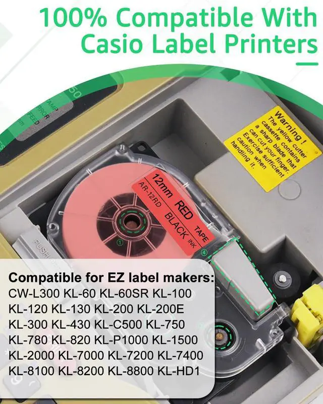 CompatibilityCompatible for EZ label makers: CW-L300 KL-60 KL-60SR KL-100 KL-120 KL-130 KL-200 KL-200E KL-300 KL-430 KL-C500 KL-750 KL-780 KL-820 KL-P1000 KL-1500 KL-2000 KL-7000 KL-7200 KL-7400 KL-8100 KL-8200 KL-8800 KL-HD1