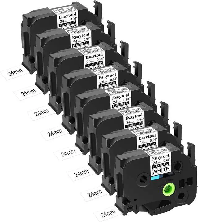 Product InformationEsaytool 8 Pack Compatible with P-touch TZeFX251 AZEFX251 TZFX251 Flexible ID Wire Cable Label Tape ; Color: Black Print on White Text; Width:0.94 inch(24mm), Length:26.2 feet(8m).