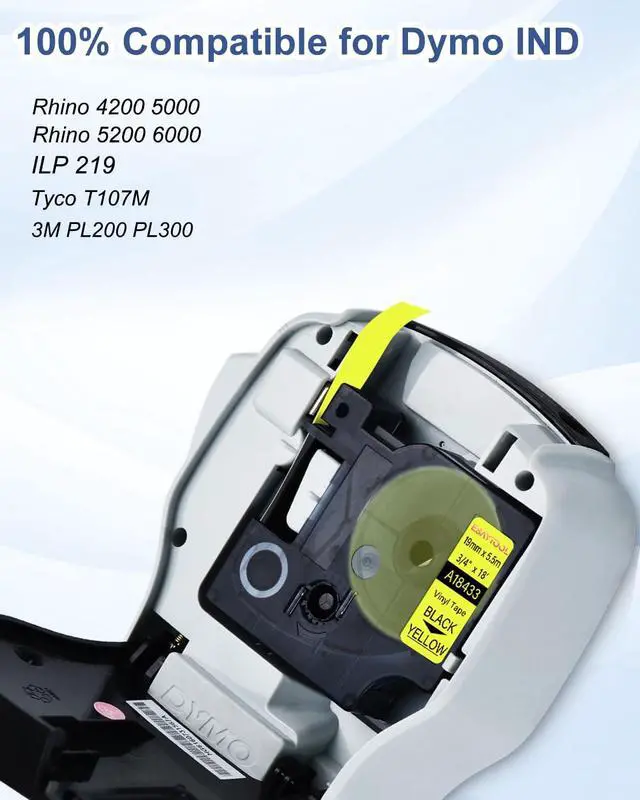 CompatibilityCompatible with Dymo Rhino label makers: DYMO Rhino 4200, DYMO Rhino 5200, DYMO Rhino 5000, DYMO Rhino 6000, ILP 219, 3M PL150, 3M PL200, 3M PL300, Tyco T107M older Rhino Printers