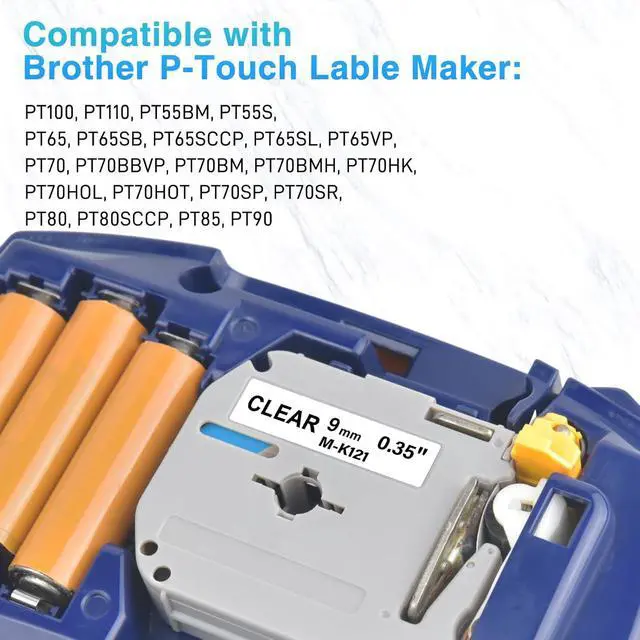 CompatibilityCompatible for brother p-touch label makers: PT100, PT110, PT55BM, PT55S, PT65, PT65SB, PT65SCCP, PT65SL, PT65VP, PT70, PT70BBVP, PT70BM, PT70BMH, PT70HK, PT70HOL, PT70HOT, PT70SP, PT70SR, PT80, PT80SCCP, PT85, PT90Notice: Compatible ptouch m tape is smaller than tze tape and not compatible for ptouch tze label makers, such as pt-d210/pt-h110/pt-d400/pt-d600...