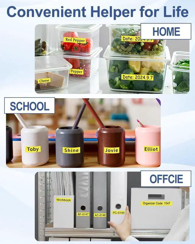 ApplicationsUses: Ideal for item classification, date labeling, operating instructions, pricing, personal name tags, DIY messages, and more. Applicable environments: Perfect for use in homes, offices, schools, hospitals, government agencies, hotels, restaurants, factories, banks, laboratories, warehouses, farms, repair shops, retail stores, and supermarkets.