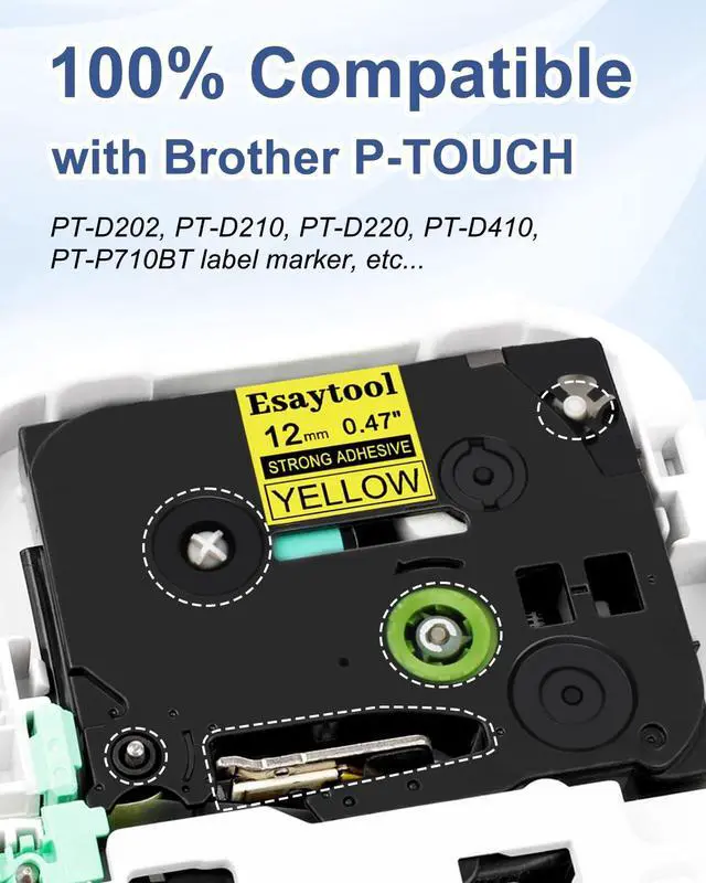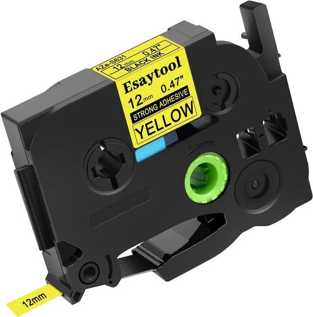 Product InformationEsaytool 20 Pack Compatible with P-touch TZeS631 AZES631 TZS631 Extra Strength Adhesive Laminated Tape; Color: Black Print on Yellow Text; Width:0.47 inch(12mm), Length:26.2 feet(8m).
