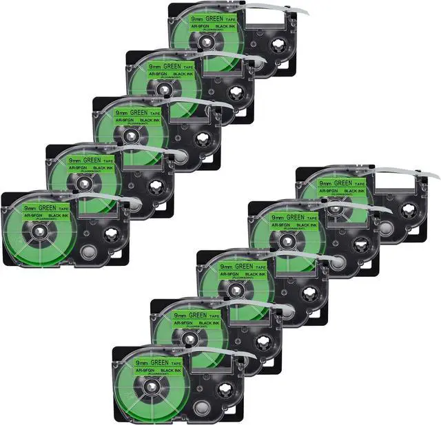 Product InformationEsaytool 10 Pack Compatible with Cassette XR9FGN XR-9FGN XR-9FGN2S XR9FGN2S Labeling Tape; Color: Black Print on Fluorescent Green Text; Width:0.35 inch(9mm), Length:16.4 feet(5.5m).