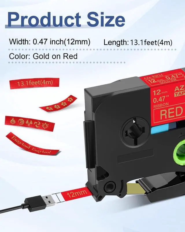 Product InformationEsaytool 8 Pack Compatible with P-touch TZeRW34 AZERW34 TZRW34 Labeling Tape; Color: Gold Print on Red Text; Width:0.47 inch(12mm), Length:13.1 feet(4m).