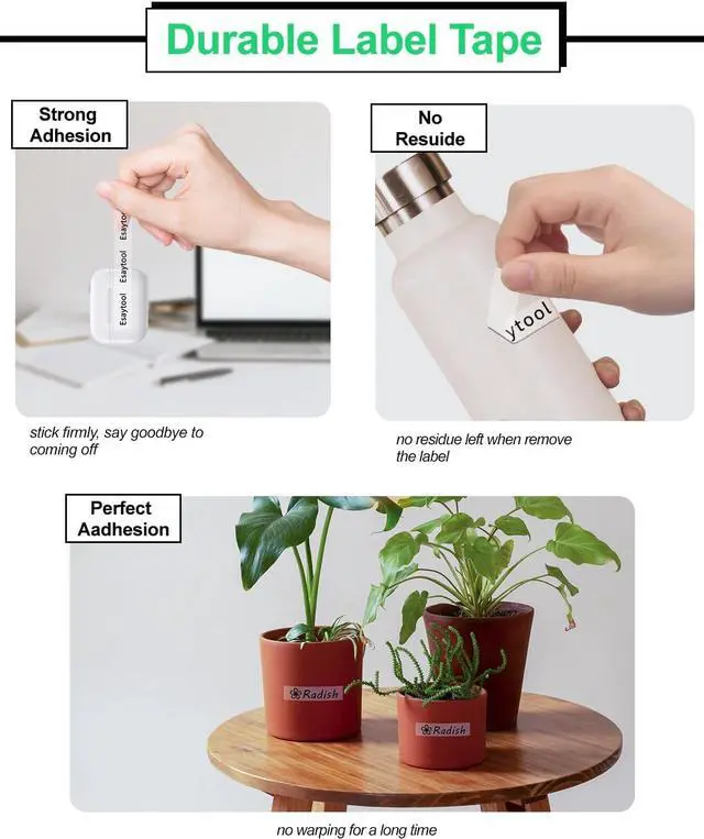 ApplicationsUses: Ideal for item classification, date labeling, operating instructions, pricing, personal name tags, DIY messages, and more. Applicable environments: Perfect for use in homes, offices, schools, hospitals, government agencies, hotels, restaurants, factories, banks, laboratories, warehouses, farms, repair shops, retail stores, and supermarkets.