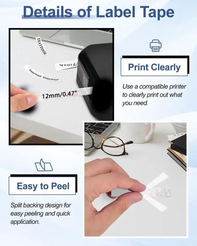 FeaturesIt will shimmer under the light, which can add a dreamy and gorgeous effect to the item and make it more attractive. Printing is smooth and lag-free, with clear, easy-to-read text.The backing tape splits cleanly down the middle for easy peeling. It leaves no sticky residue after label removal.