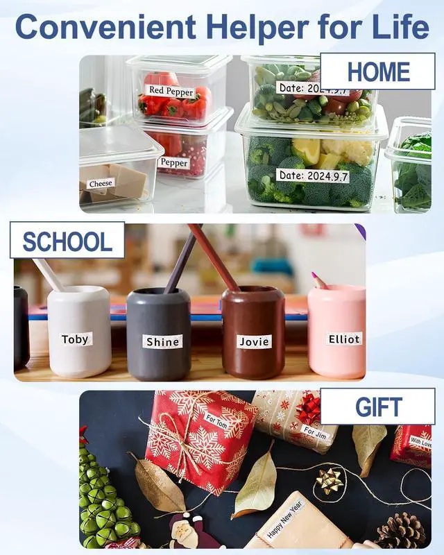 ApplicationsUses: Ideal for item classification, date labeling, operating instructions, pricing, personal name tags, DIY messages, and more. Applicable environments: Perfect for use in homes, offices, schools, hospitals, government agencies, hotels, restaurants, factories, banks, laboratories, warehouses, farms, repair shops, retail stores, and supermarkets.