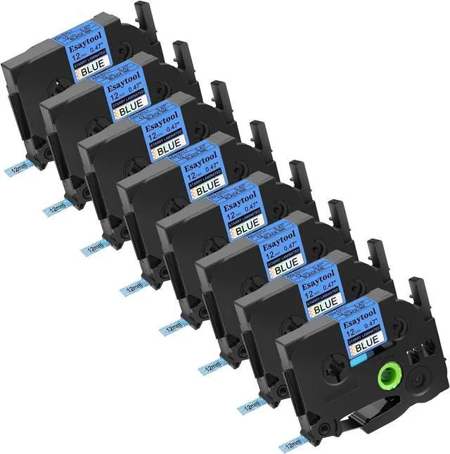 Product InformationEsaytool 8 Pack Compatible with P-touch TZe531L1 AZE531L1 TZ531L1 Labeling Tape; Color: Black Print on Rainbow Glitter Blue; Width:0.47 inch(12mm), Length:26.2 feet(8m).