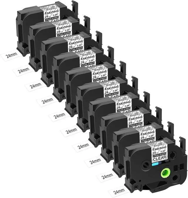 Product InformationEsaytool 10 Pack Compatible with P-touch TZeS151 AZES151 TZS151 Extra Strength Adhesive Laminated Tape; Color: Black Print on Clear Text; Width:0.94 inch(24mm), Length:26.2 feet(8m).