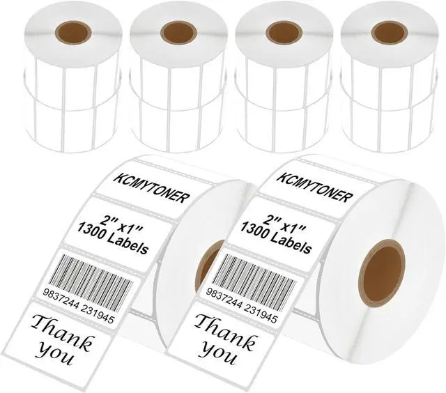 Package Includes: 10 rolls KCMYTONER 2 in x 1 in 1" core multipurpose thermal direct paper labels, 1300 labels per roll, with perforated design between labels for easier separation