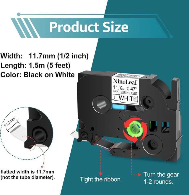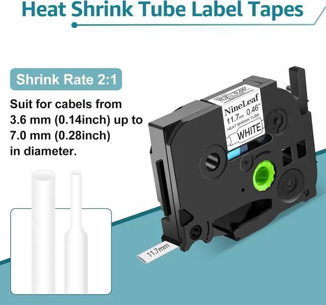 NineLeaf Compatible for Ptouch HSe-231 HSe231 HS-231 HS231 Heat Shrink Tube Label Tapes, Color:Black on White,Length:1.5m(4.92ft),Width:11.7mm(0.46"),Shrink rate is 2:1