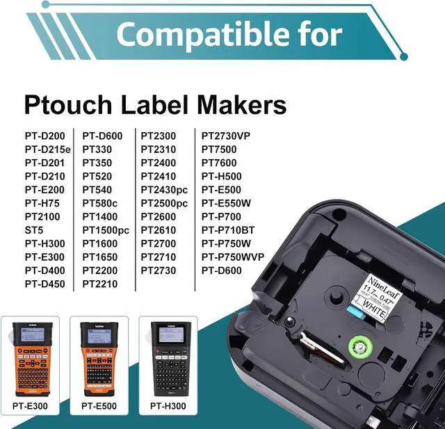 Compatible for Ptouch label makers PT-D400 PT-D400AD PT-D600 PT-D800W PT-E200 PT-E300 PT-E500 PT-E550W PT-E800W PT-9700PC PT-9800PCN PT-H300LI PT-H500 PT-H500LI PT-P700 PT-P750W PT-1000BM PT-P300BT PT-P710BT and more printers listed in the description.