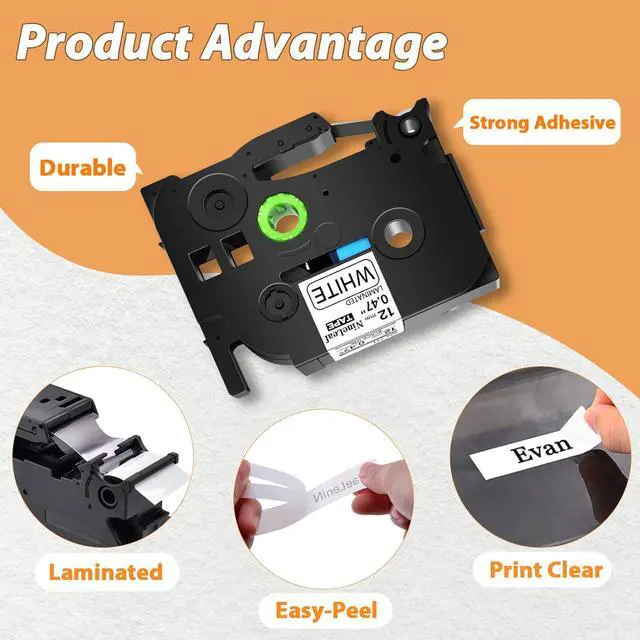 Color: Black on White; Size: 1/2 inch (12mm) x 26.2 feet (8m). Compatible tze tape 12mm print clear and natural, make your things all be tidy and clean at a glance.
