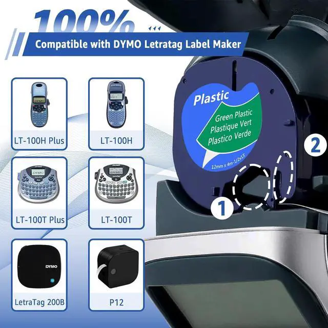 Compatible for Dymo LetraTag, LetraTag LT-100H, LetraTag LT-100T , LetraTag Plus LT-100H, LetraTag Plus LT-100T, LetraTag QX50, LetraTag XR, LetraTag XM, LetraTag 2000, LetraTag LT-110T