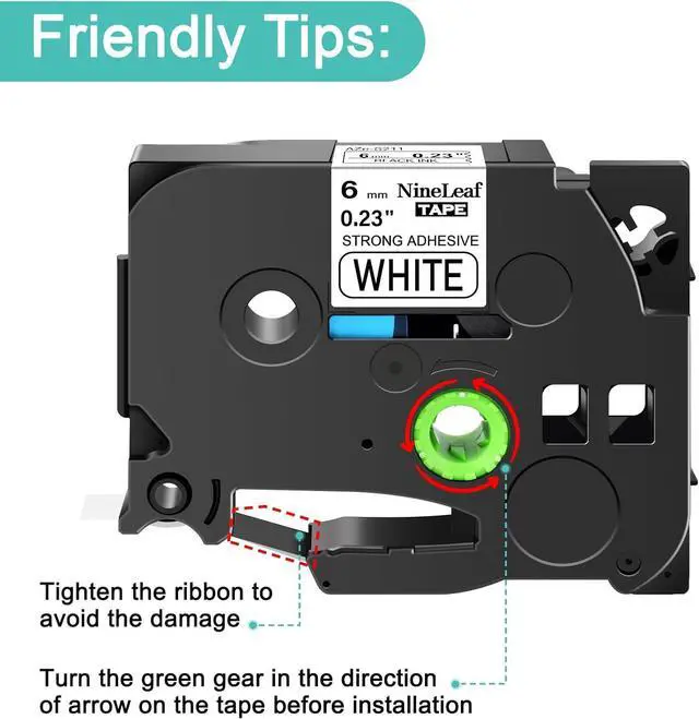 NineLeaf compatible for brother ptouch label maker tape TZ-S211 TZe-S211 TZS211 TZeS211 ptouch tz tape 6mm 0.23 laminated white extra strength label tape