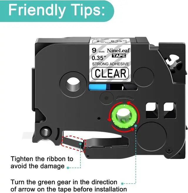 Color: black on clear; Size: 3/8 inch (9mm) x 26.2 feet (8m). Compatible tze tape 9mm print clear and natural, easy to peel and use, make your things all be tidy and clean at a glance.