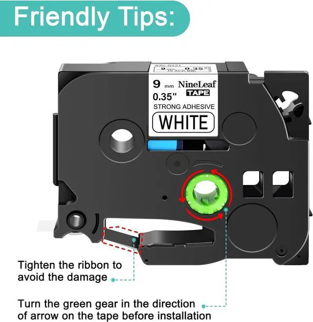 NineLeaf compatible for brother ptouch label maker tape TZ-S221 TZe-S221 TZS221 TZeS221 ptouch tz tape 9mm 0.35 laminated white extra strength label tape