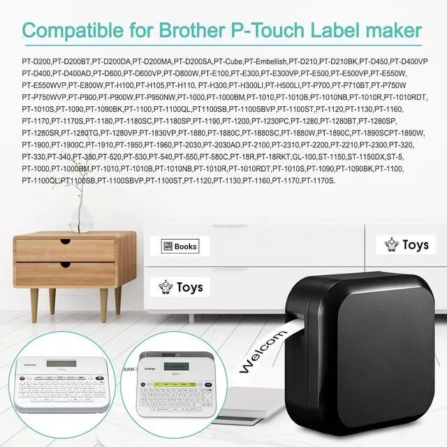 Compatible for brother p-touch label makers: PT-H100 PT-H110 PT-H107 PT-E110 PT-H105 PT-E100 PT-H110 PT-D200 PT-D210 PT-D220 PT-D400 PT-D410 PT-D460 PT-D600 PT-D610BT PT-P710BT PT-P750WVP PT-P750W PT-P700 H500LI PT-H500 PT-550