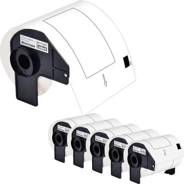 Package Includes: 6 roll KCMYTONER compatible for DK-1247 die-cut shipping thermal direct label; color: black print on white tape; size: 4.07 in x 6.4 in (103mm x 164mm), 180 labels per roll.