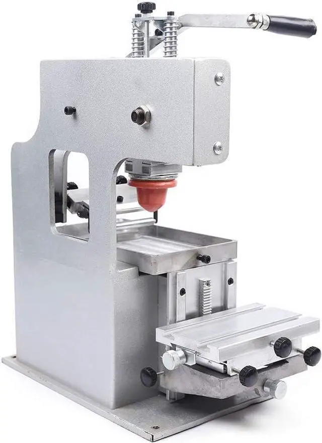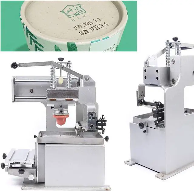 This manual Pad Printer is used to print manufacture trademarks or expiration dates, lot number, sign or logo on bottles, papers, cups, or boxes of most every type of material, such as plastic or metal.