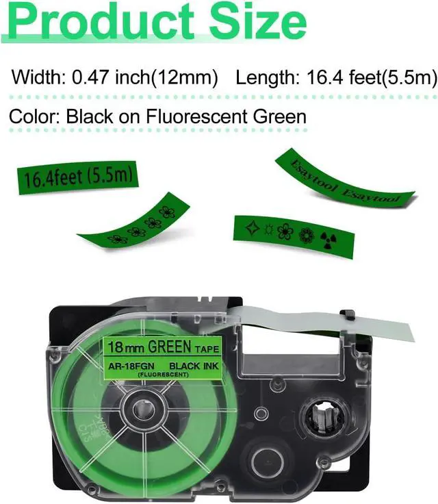 Esaytool Compatible with XR18FGN 18mm Cassette Label Tape