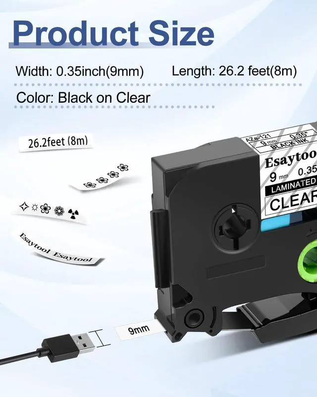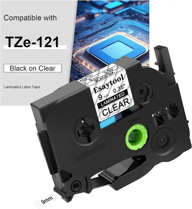 Product InformationEsaytool 20 Pack Compatible with P-touch TZe121 AZE121 TZ121 Labeling Tape; Color: Black Print on Clear Text; Width:0.35 inch(9mm), Length:26.2 feet(8m).