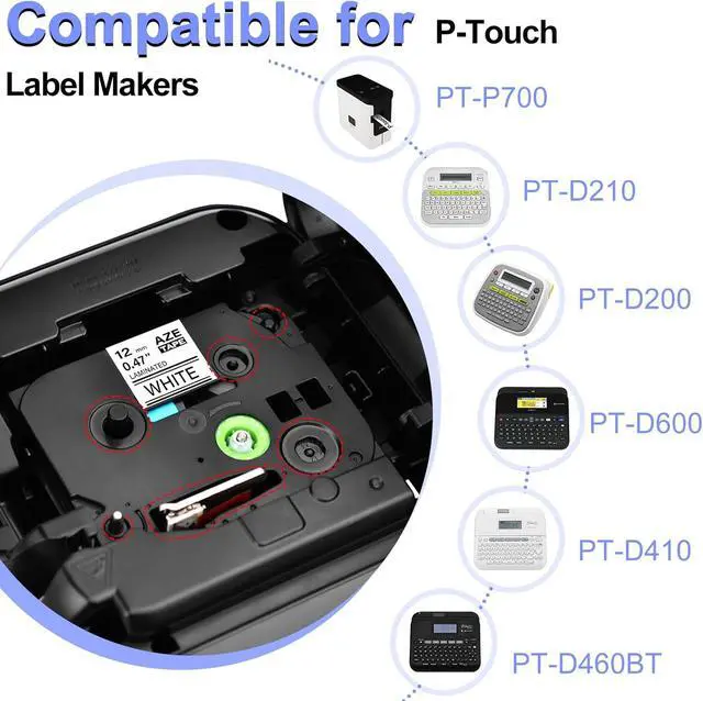 1Home2School3Outdoor PtouchPT-D210, PT-D220, PT-D202, PT-D200, PT-H110, PT-D400, PT-D400AD, PT-D600, PT-D610BT, PT-P710BT, PT-P700, PT-1890W, PT-P910BT, PT-H100, PT-D400VP, PT-D450, PT-D600VP, PT-P750W, PT-1280, Ptouch Embellish PT-D215ePtouchPT-D800W, PT-E550W, PT9700PC, PT-2300, PT-1280SR, PT2030AD, PT-1090, PT-1290, PT-1880W, PT-9600, PT-H100, GL-100, GL-H100, PT-1000, PT-1000BM, PT-1010, PT-1010B, PT-1010NB, PT-1010R, PT-1010RDT, PT-1010SPtouchPT-1090BK, PT-1100, PT-1100QL, PT1100SB, PT-1100SBVP, PT-1100ST, PT-1120, PT-1130, PT-1160, PT-1170, PT-1180, PT-1180SC, PT-1180SP, PT-1190, PT-11Q, PT-1200, PT-1280BT, PT-1280TG, PT-1280VP, PT-128AFPtouchPT-1290BT, PT-1290BT2, PT-1290RS, PT-1290SBVP, PT-1300, PT-1400, PT-1500, PT-1500PC, PT-1600, PT-1700, PT-1750, PT-1750SC, PT-1800, PT-1810, PT-1830, PT-1830C, PT-1830SC, PT-1830VP, PT-1880CT, PT-1880SC, PT-1890SCPtouchPT-18R, PT-18RKT, PT-1900, PT-1900C, PT-1910, PT-1950, PT-1960, PT-200, PT-2030, PT-2030VP, PT-2100, PT-2110, PT-2200, PT-2210, PT-2310, PT-2400, PT-2410, PT-2470, PT-2500PC, PT-2610, PT-2700, PT-2710, PT-300, PT-300B, PT-310, PT-310B, PT-320, PT-330, PT-340, PT-350, PT-3600PtouchPT-4000, PT-520, PT-530, PT-540, PT-550, PT-580C, PT-6100, PT-7100, PT-7500, PT-9200DX, PT-9200PC, PT-9400, PT-9500PC, PT-9800PCN, PT-D200BT, PT-D200DA, PT-D200MA, PT-D200SA, PT-D210BK, PT-E100PtouchPT-E300, PT-E300VP, PT-E500, PT-E500VP, PT-E550WVP, PT-H105, PT-H300, PT-H300LI, PT-H500LI, PT-P750WVP, PT-P900W, PT-P950NW, ST-1150, ST-1150DX, ST-5, PT-D200G, PT-D800W, PT-E110, PT-H100P, PT-H100R, PT-H110BK, PT-1170S, PT-P900 Compatible for