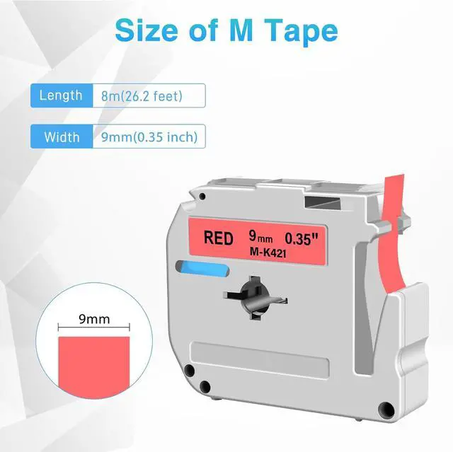 Product InformationEsaytool 20 Pack Compatible with P-touch M-K421 MK421 M421 Labeling Tape; Color: Black Print on Red Text; Width:0.35 inch(9mm), Length:26.2 feet(8m).