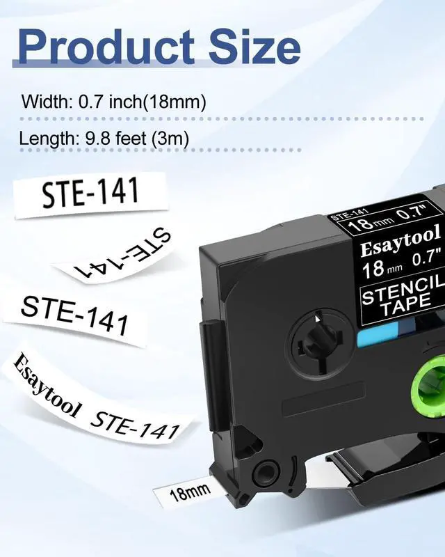 Product InformationEsaytool 8 Pack Compatible with STe-141 STe141 ST-141 ST141 Stencil Metal Etching Tape; Color: Black Print on Clear Text; Width:0.7 inch(18mm), Length:9.8 feet (3m)
