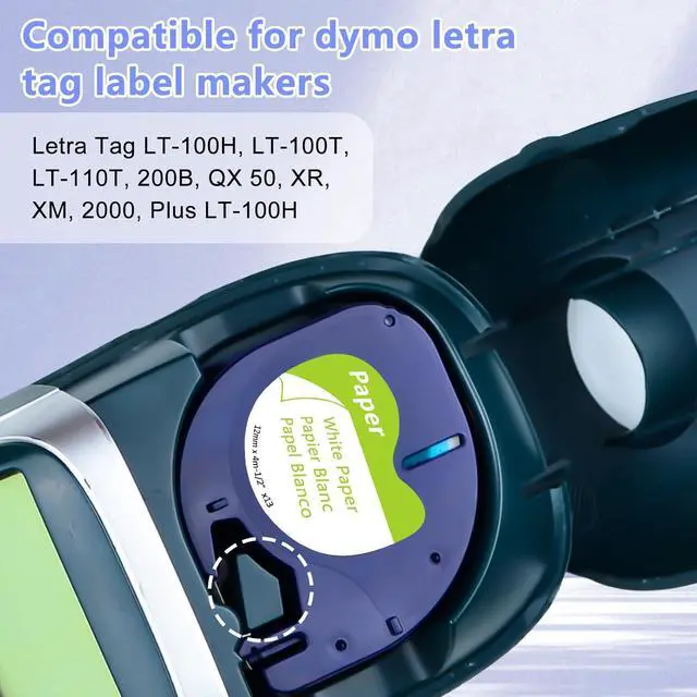 Compatible for dymo letra tag label makers: letra tag LT-100H, LT-100T, LT-110T, 200B, QX 50, XR, XM, 2000, Plus LT-100H