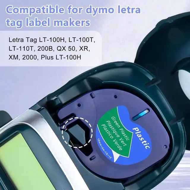 Compatible for dymo letra tag label makers: letra tag LT-100H, LT-100T, LT-110T, 200B, QX 50, XR, XM, 2000, Plus LT-100H