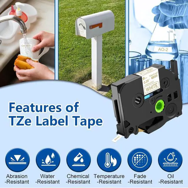 Compatible with brother ptouch tze tz tape is resistant to water, chemical, fade, temperature and UV. It won't smudge or smear. Won't leave residue when removed.