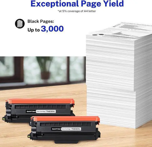 With Chip Version: Each TN830XL toner cartridge is equipped with an advanced chip, enabling seamless printer recognition and accurate ink level display. Enjoy effortless installation and quick, reliable recognition.