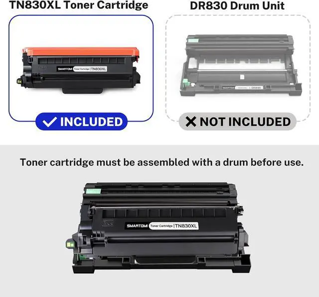 Package Contents:2 x TN830XL Toner Cartridge (Not included DR830 drum unit)