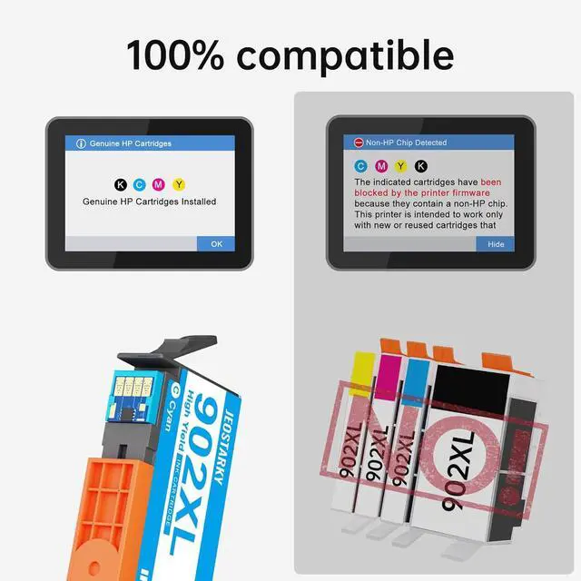 Compatible hp 902 ink cartridges are compatible with HP OfficeJet Pro 6978 6968 6970 6960 6971 6974 6975 6976 6979 6965 6977, as well as compatible with HP OfficeJet 6950 6951 6954 6956 6958 6961 6962 6963 6964 6966 printer