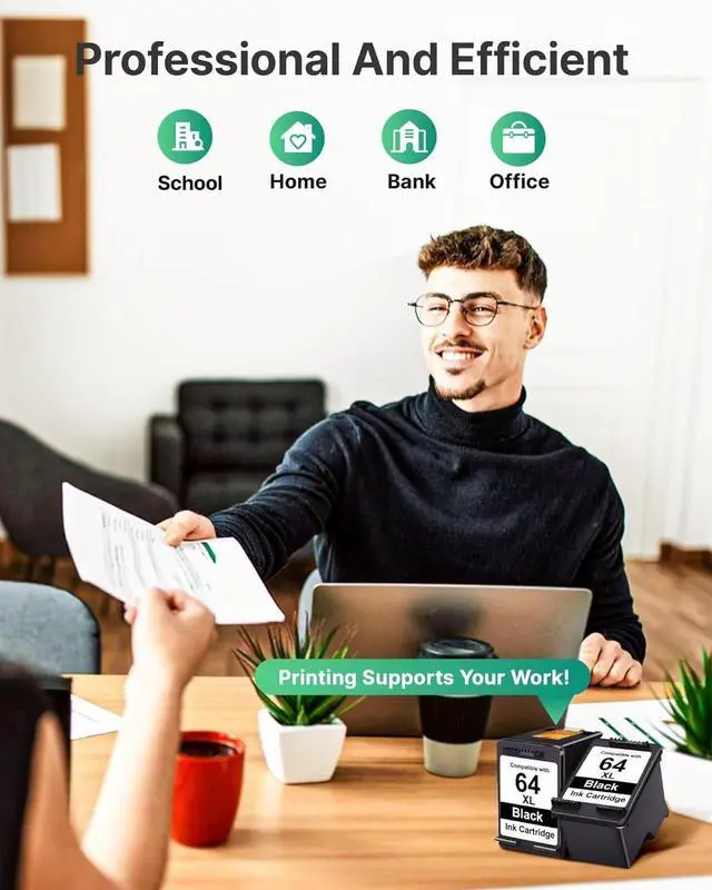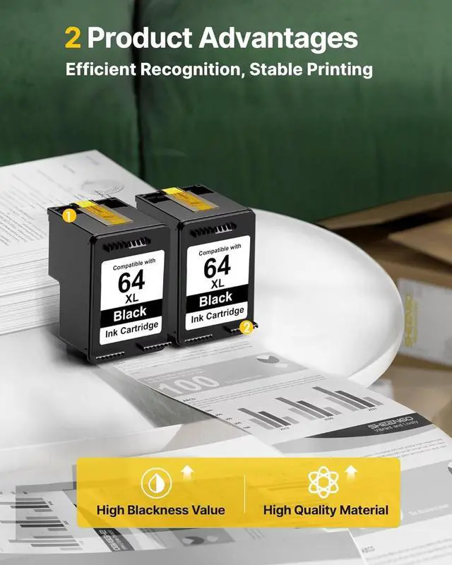 Premium Print Quality: Engineered for sharp text, SHEENGO 64xl black ink cartridge for hp envy photo 7855 ink cartridges deliver professional-grade results, ensuring crisp documents every time.