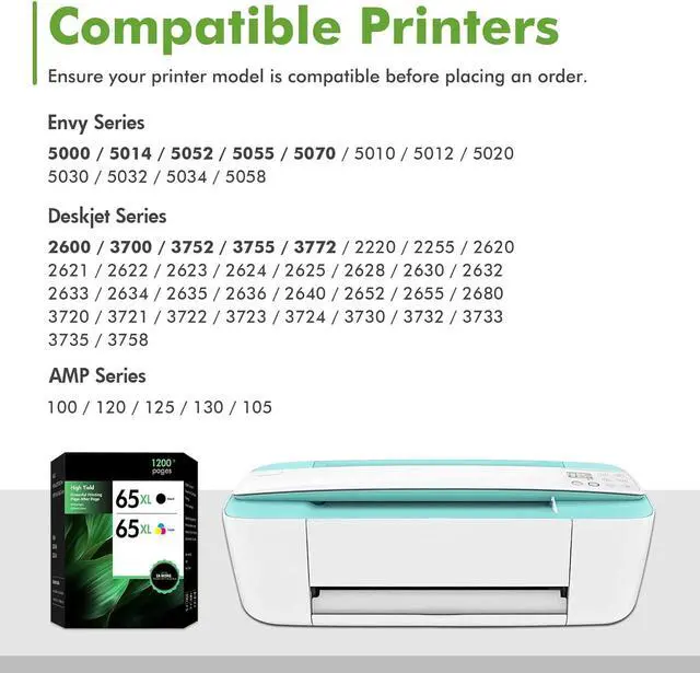 Compatible for HP DeskJet 3700 2600 Series: 3755 3772 3752 2655, 2622 2220 2255 2620 2621 2623 2624 2625 2628 2630 2632 2633 2634 2635 2636 2640 2652 2680, 3720 3721 3722 3723 3724 3730 3732 3733 3735 3758