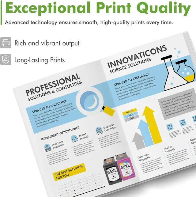 High Page Yield: It yields up to 750 pages for each 65XL Black Ink and 450 pages for each 65XL Color Ink at 5% coverage (A4e letter)