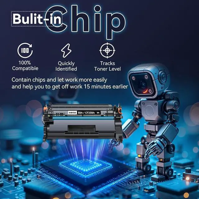 Built-In Chip: InkNI 58a toner cartridge pre-installed with the latest version smart chip, No need to transfer or reuse chips from your 58a toner cartridge black toner