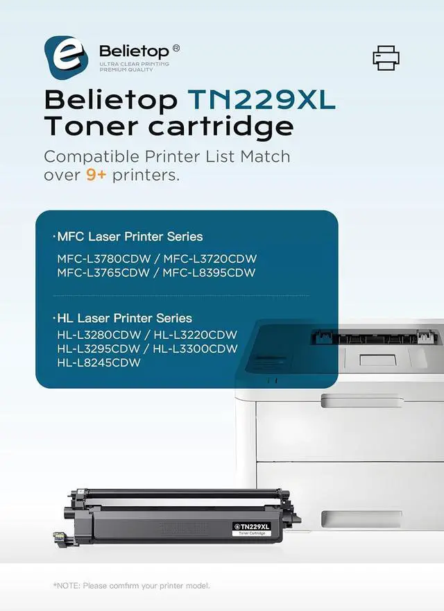 Guaranteed Perfect Match This TN229XL/TN-229 cartridge is manufactured to the exact specifications of original cartridges. It is designed to work seamlessly with a wide range of models, such as the MFC-L3780CDW, HL-L3280CDW, and HL-L3300CDW (see full list in product description).