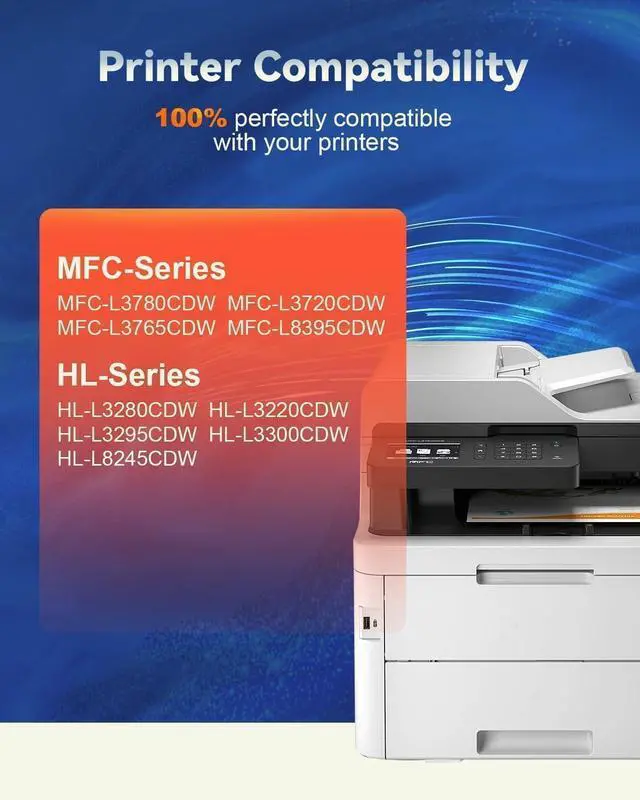 • Printers Compatibility: TN229XL Toner Cartridge Set Work for Brother MFC-L3780CDW MFC-L3720CDW HL-L3280CDW HL-L3220CDW HL-L3300CDW HL-L3295CDW HL-L8245CDW MFC-L3765CDW MFC-L8395CDW printers