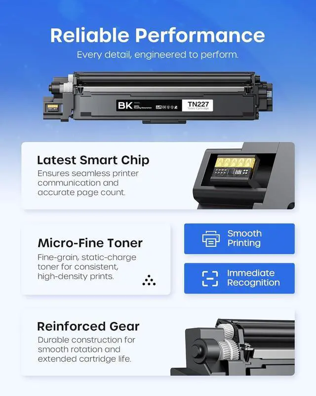 Excellent Performance: Our Compatible TN 227 TN-227 TN227BK/C/M/Y high yield toner cartridges deliver superior printing results with vivid colors and clear prints