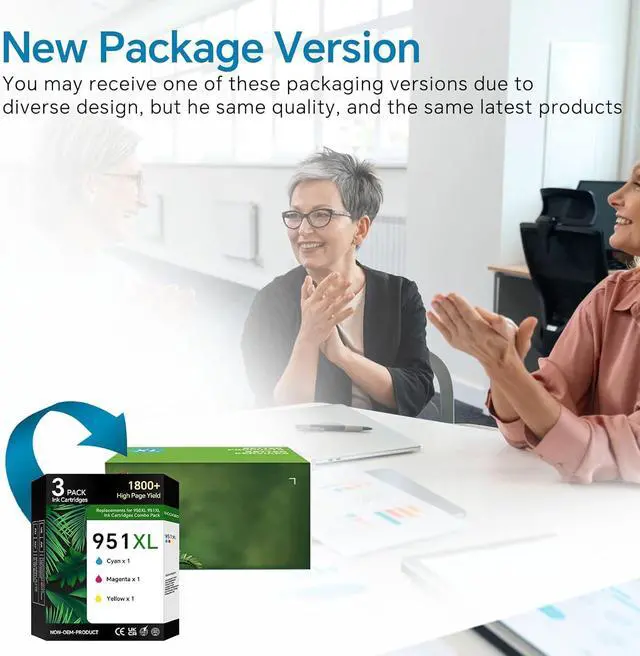 951XL Ink Cartridges Includes 1 x 951XL Cyan, 1 x 951XL Magenta, and 1 x 951XL Yellow compatible ink cartridges. Each cartridge is equipped with the latest smart chip to ensure seamless recognition and accurate ink level tracking with your printer.