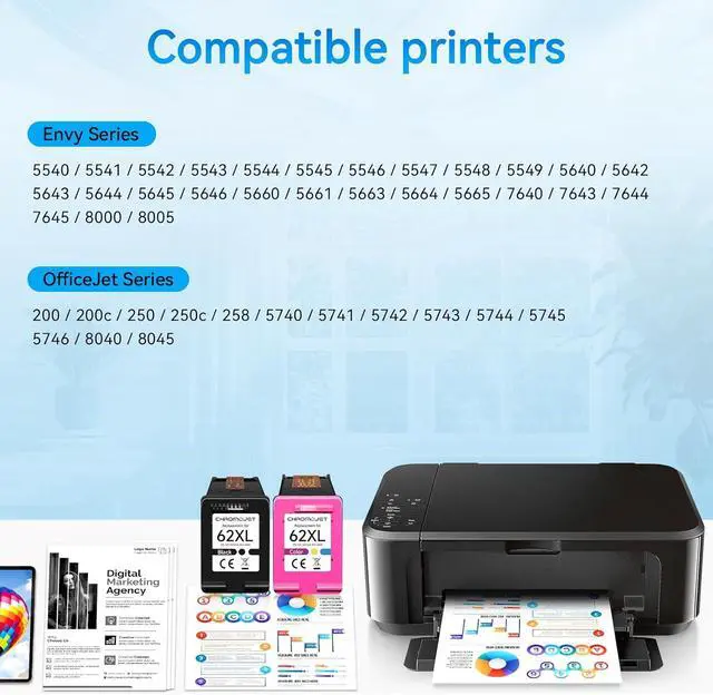Product Name: Chromojet 62xl Ink Cartridges Black and Color Compatible for HP 62XL Ink Cartridge Combo Pack for HP Ink 62 fit for Envy 7640 7645 5660 5540 5640 7644 OfficeJet 250 258 5740 5741 8040 200 Printer