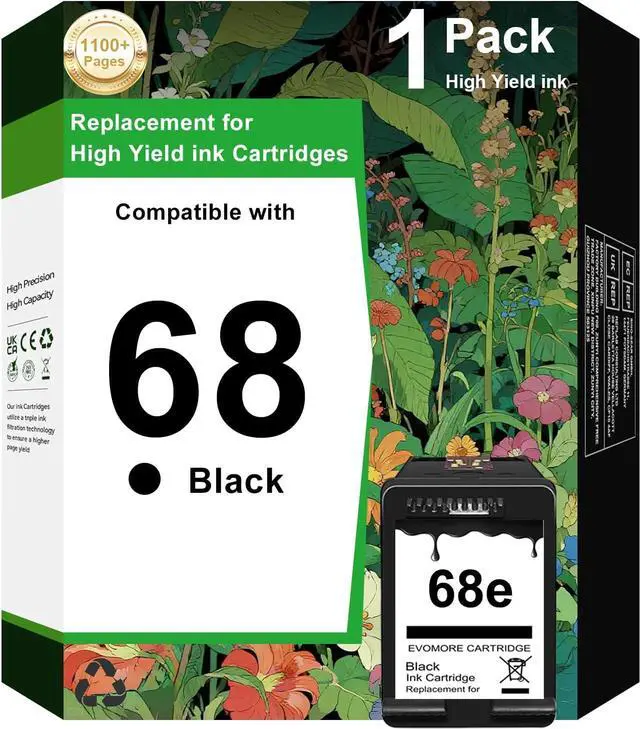For 68e Black Ink Cartridge Printer Compatibility: Envy 6100e Series:6100e 6120e 6130e 6132e 6152e 6165e 6155e; Envy 6500e Series:6500e 6520e 6530e 6552e 6555e 6558e Printer