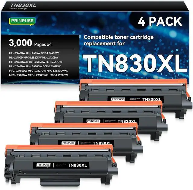 Package content: 4 Pack tn830xl toner cartridge replacements compatible for Brother 830XL toner cartridge